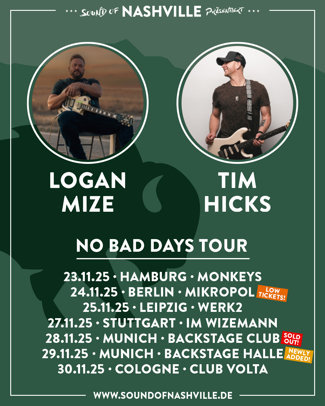 Seit dem Start hat sich SOUND OF NASHVILLE nicht nur in Städten wie Hamburg, Köln, München und Berlin etabliert, sondern hat sich auch in der ‚Music City‘ Nashville einen Namen gemacht. Im März 2019, direkt im Anschluss an Europas größtes Country Music Festival (C2C: Country to Country), gingen Künstler:innen aus Nashville zum ersten Mal im Rahmen von SOUND OF NASHVILLE auf Tour. Seitdem folgten beeindruckende Performances von Künstler:innen wie Luke Combs, Brandi Carlile, Lainey Wilson, Dasha, Dylan Gossett, Megan Moroney, Max McNown, Cameron Whitcomb, Shaboozey, Zach Bryan u.v.m.